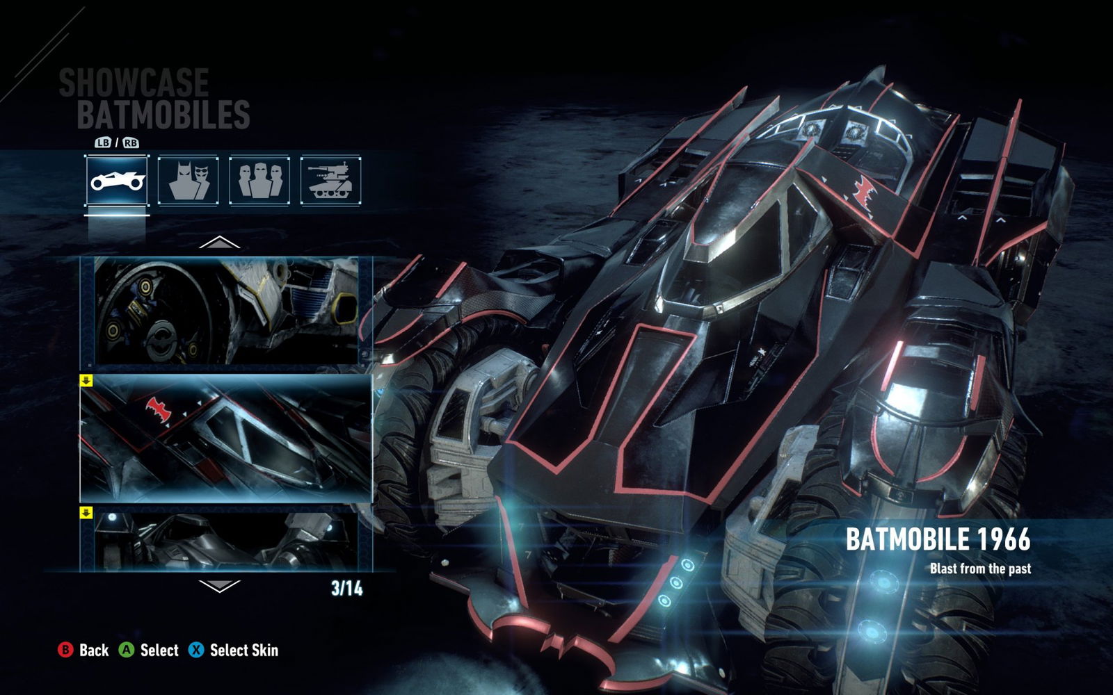 This mod will allow you to use and play the PS4 Exclusives of Scarecrow Nightmare Challenges, Batmobile 1966 Themed, Batman Earth 2 Dark Knight Batsuit, Batman Classic TV Series Batsuit, and Batman Justice League 3000 Batsuit on PC (Steam).